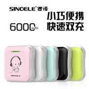 批发双usb手机移动电源6000毫安 创意礼品迷你卡通苹果充电宝定制
